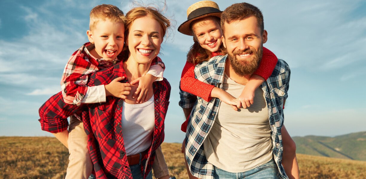 Concept illustration of a happy family hugging each other